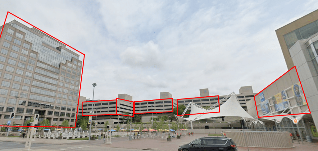 On top of working around the layout of the buildings, we also had to circumvent windows, reflective surfaces, and other exterior features.